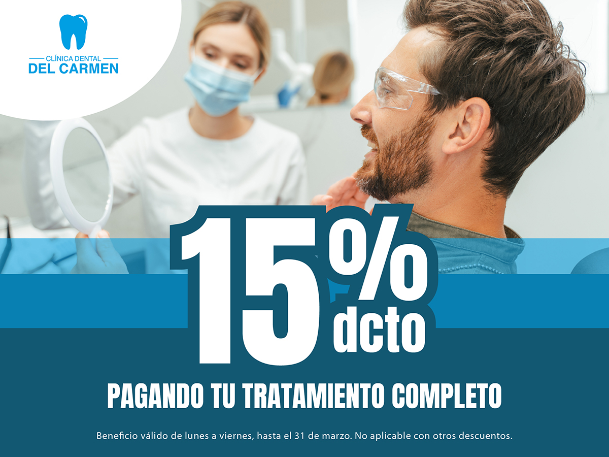 Obtén 15% de descuento pagando tu tratamiento completo y resuelve todo en un solo paso.